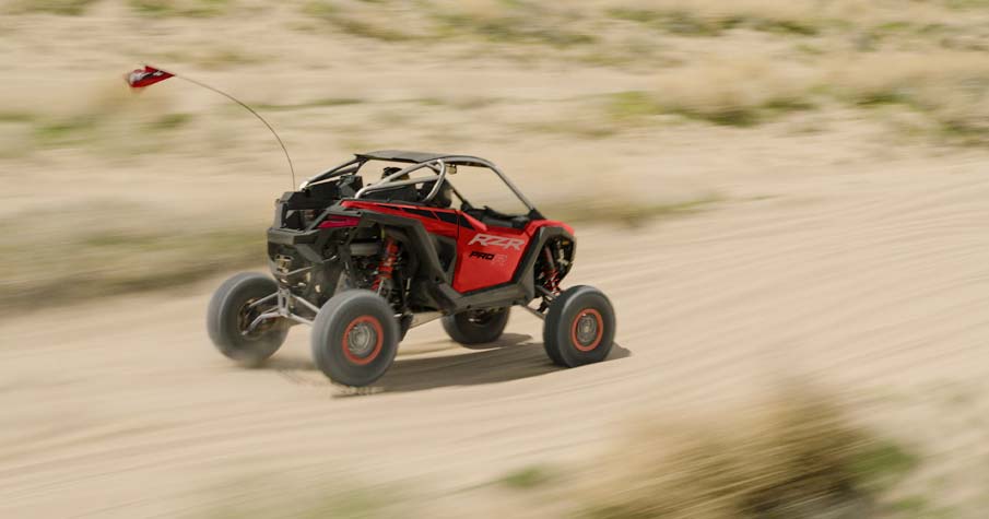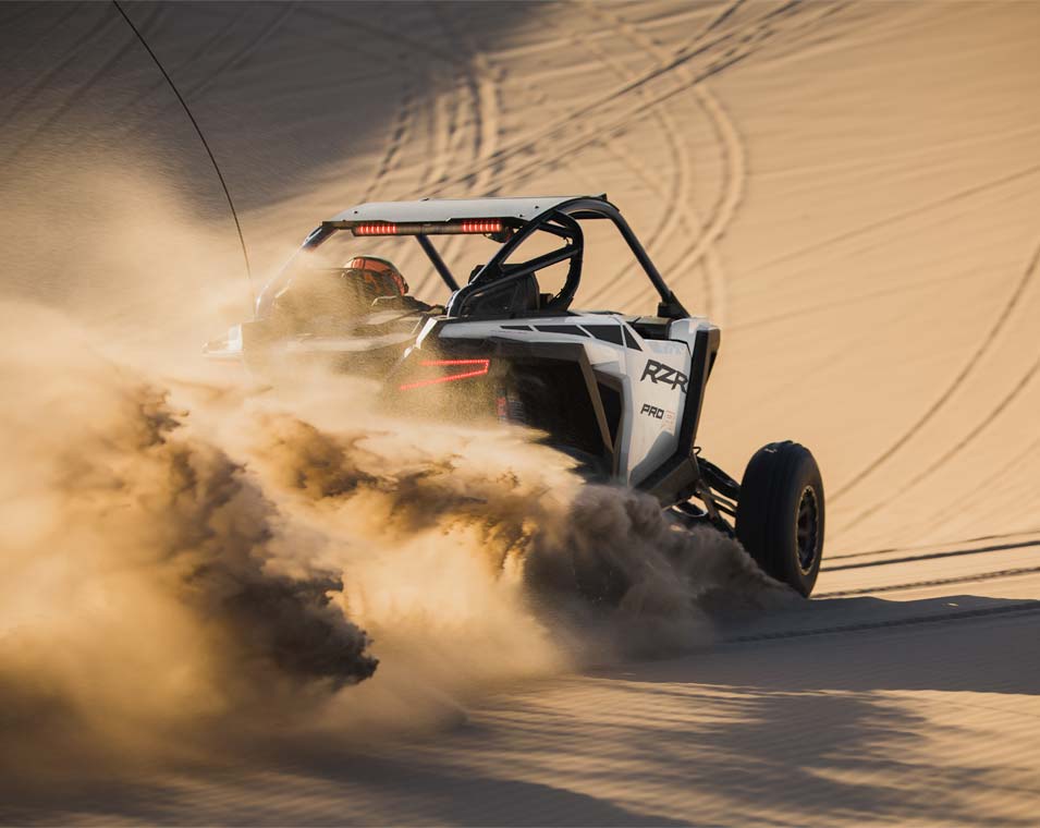 Out-thrill them all with an off-road beast designed to dominate. RZR Pro R delivers heart-pounding performance to defy deserts, conquer dunes and break records off road. Never place second again. With RZR Pro R, you always win.